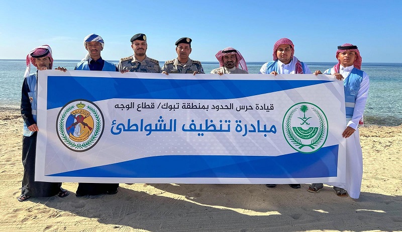 حرس الحدود ينفذ مبادرة تطوعية لتنظيف شاطئ الدرر بمنطقة تبوك