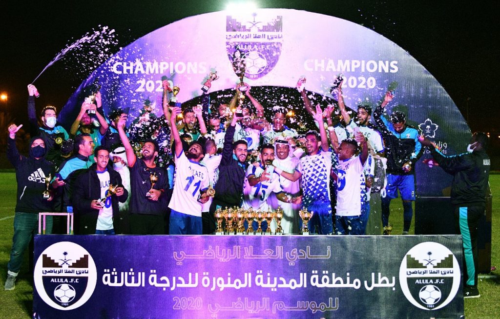 توّج نادي العلا الرياضي مساء الخميس 1442/4/26هـ بطلاً لمنطقة المدينة المنورة لكرة القدم للدرجة الثالثة بعد فوزه في المباراة التي جمعته بنادي العقيق من ينبع النخل بنتيجة ( 3– 0 ) وحصوله على بطولة المنطقة وتأهله لتصفيات الصعود للدرجة الثانية في اللقاء الذي جمع الفريقين على ملعب نادي العلا.