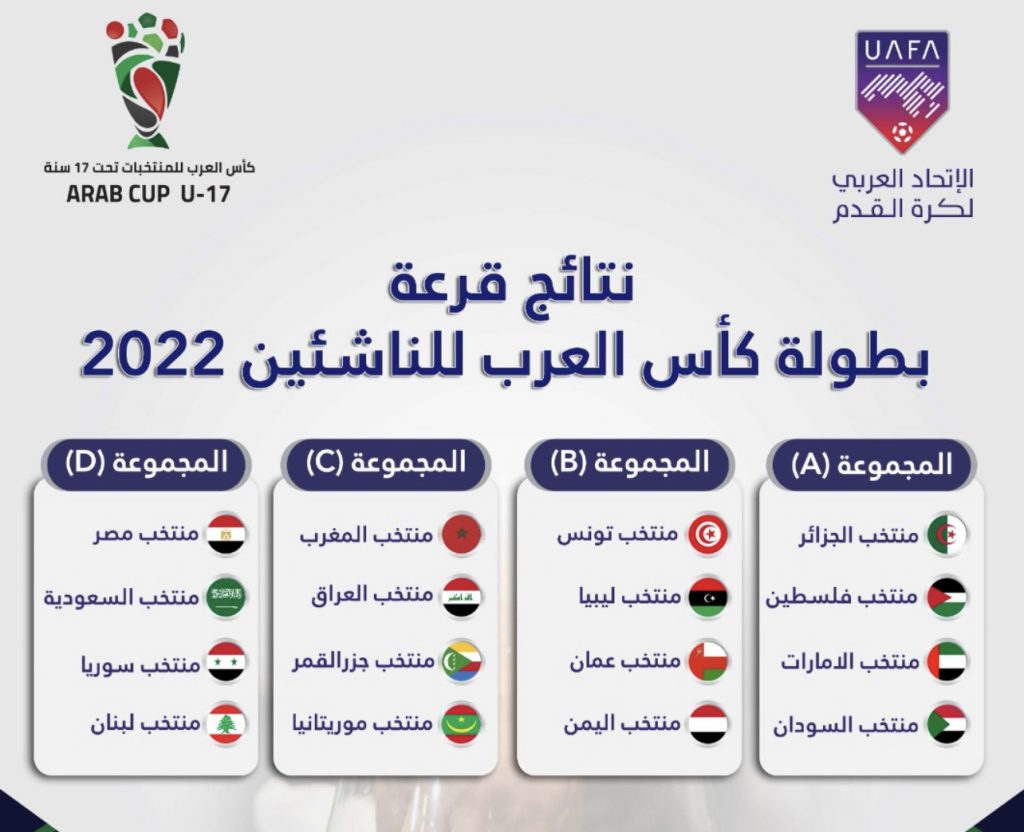 قرعة كأسُ العرب للناشئين : الأخضرُ في مجموعة مصر وسوريا ولبنان
