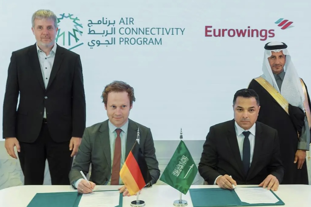 توقيع اتفاقية بين برنامج الربط الجوي وخطوط “يورو وينغز” الألمانية لتعزيز الربط الجوي بين المملكة والاتحاد الأوروبي