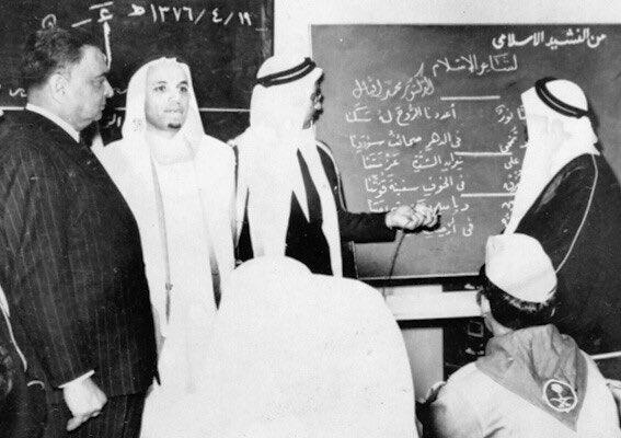 وأظهرت الصور، الملك سعود وهو يتحدث إلى الرئيس الباكستاني في حضور رئيس الجيش الباكستاني الجنرال أيوب خان، وبعض مسؤولي البلدين.