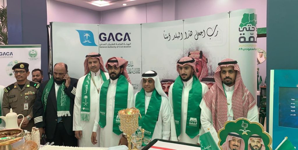 الهيئة العامة للارصاد وحماية البيئة بالطائف تحتفل باليوم الوطني بمطار الطائف الدولي .