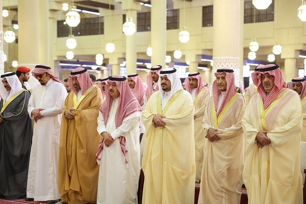 وأدى الصلاة مع سموه، صاحب السمو الملكي الأمير منصور بن سعود بن عبدالعزيز، وصاحب السمو الملكي الأمير سعود بن سعد بن عبدالعزيز، وصاحب السمو الأمير عبدالرحمن بن سعود الكبير، وصاحب السمو الملكي الأمير متعب بن عبدالله بن عبدالعزيز، وصاحب السمو الملكي الأمير فيصل بن خالد بن عبدالعزيز مستشار خادم الحرمين الشريفين، وصاحب السمو الملكي الأمير مشاري بن سعود بن عبدالعزيز، وصاحب السمو الملكي الأمير الوليد بن طلال بن عبدالعزيز، وصاحب السمو الملكي الأمير خالد بن طلال بن عبدالعزيز، وصاحب السمو الملكي الأمير مصعب بن سعود بن عبدالعزيز، وصاحب السمو الملكي الأمير حمود بن سعود بن عبدالعزيز، وصاحب السمو الملكي الأمير ممدوح بن عبدالرحمن بن سعود بن عبدالعزيز، وصاحب السمو الملكي الأمير عبدالعزيز بن عبدالله بن سعود بن عبدالعزيز، وصاحب السمو الأمير تركي بن محمد بن عبدالله بن عبدالرحمن، وصاحب السمو الأمير تركي بن محمد بن سعود، وصاحب السمو الملكي الأمير طلال بن بدر بن سعود بن عبدالعزيز، وصاحب السمو الملكي الأمير فيصل بن تركي بن عبدالعزيز المستشار في الديوان الملكي، وصاحب السمو الأمير عبدالعزيز بن عبدالله بن عبدالرحمن، وصاحب السمو الملكي الأمير مشعل بن بدر بن سعود بن عبدالعزيز، وصاحب السمو الملكي الفريق الركن تركي بن بندر بن عبدالعزيز قائد القوات الجوية الملكية السعودية، وصاحب السمو الملكي الأمير مشعل بن محمد بن سعود بن عبدالعزيز، وصاحب السمو الأمير الدكتور نايف بن ثنيان بن محمد، وصاحب السمو الأمير خالد بن عبدالعزيز بن عياف، وصاحب السمو الأمير بندر بن سعد بن خالد، وصاحب السمو الأمير سعود بن عبدالله بن محمد بن عبدالرحمن، وصاحب السمو الأمير سلطان بن سعود بن محمد، وصاحب السمو الملكي الأمير محمد بن فيصل بن بندر بن عبدالعزيز، وصاحب السمو الأمير عبدالله بن فهد بن عبدالله، وصاحب السمو الملكي الأمير سعود بن نهار بن سعود بن عبدالعزيز محافظ الطائف، وصاحب السمو الملكي الأمير محمد بن نهار بن عبدالعزيز، وصاحب السمو الملكي الأمير عبدالعزيز بن تركي بن طلال بن عبدالعزيز، وصاحب السمو الملكي الأمير بندر بن فيصل بن بندر بن عبدالعزيز مساعد رئيس الاستخبارات العامة، وصاحب السمو الملكي الأمير عبدالعزيز بن طلال بن عبدالعزيز، وصاحب السمو الملكي الأمير عبدالرحمن بن طلال بن عبدالعزيز، وصاحب السمو الملكي الأمير خالد بن الوليد بن طلال بن عبدالعزيز، وصاحب السمو الملكي الأمير خالد بن محمد بن فهد بن عبدالعزيز، وصاحب السمو الملكي الأمير سعود بن خالد بن طلال بن عبدالعزيز، وصاحب السمو الملكي الأمير محمد بن خالد بن طلال بن عبدالعزيز.