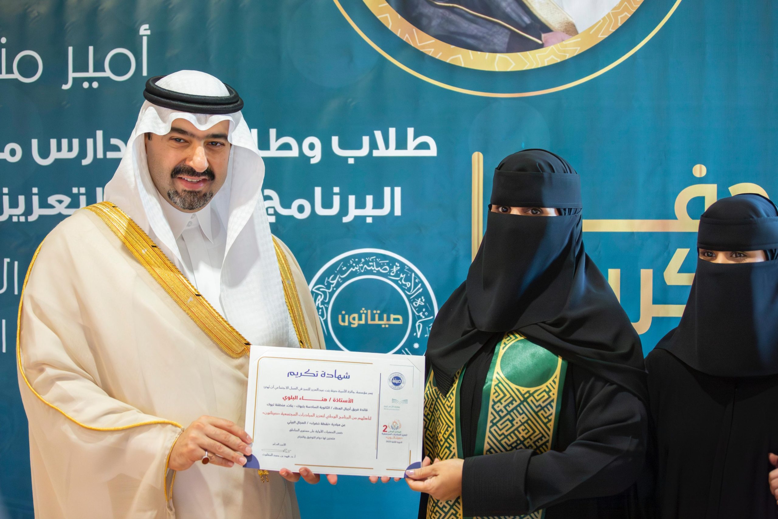 وتضمن الاحتفال تكريم 65 طالبًا وطالبة من تعليم المنطقة الفائزين بجوائز البرنامج الوطني.