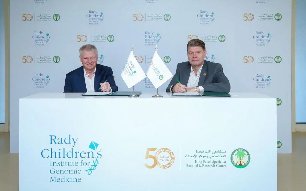 وقّع مستشفى الملك فيصل التخصصي ومركز الأبحاث، اتفاقية شراكة مع معهد رادي لطب الجينوم للأطفال بالولايات المتحدة، للتعاون في تطوير منصة لإجراء فحوصات جينية متقدمة للأطفال حديثي الولادة، للكشف عن نحو 500 مرض وراثي قابل للعلاج والوقاية، ويسهم في حماية الأطفال من المضاعفات الخطيرة ويدعم التدخل العلاجي في الوقت المناسب.