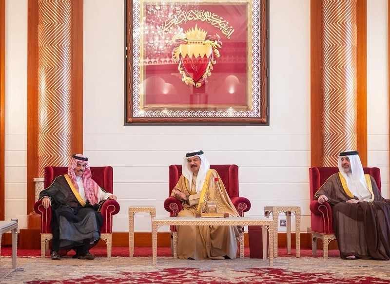 استقبل جلالة الملك حمد بن عيسى آل خليفة ملك مملكة البحرين، في قصر الصافرية بالعاصمة البحرينية المنامة، اليوم، صاحب السمو الأمير فيصل بن فرحان بن عبدالله وزير الخارجية.