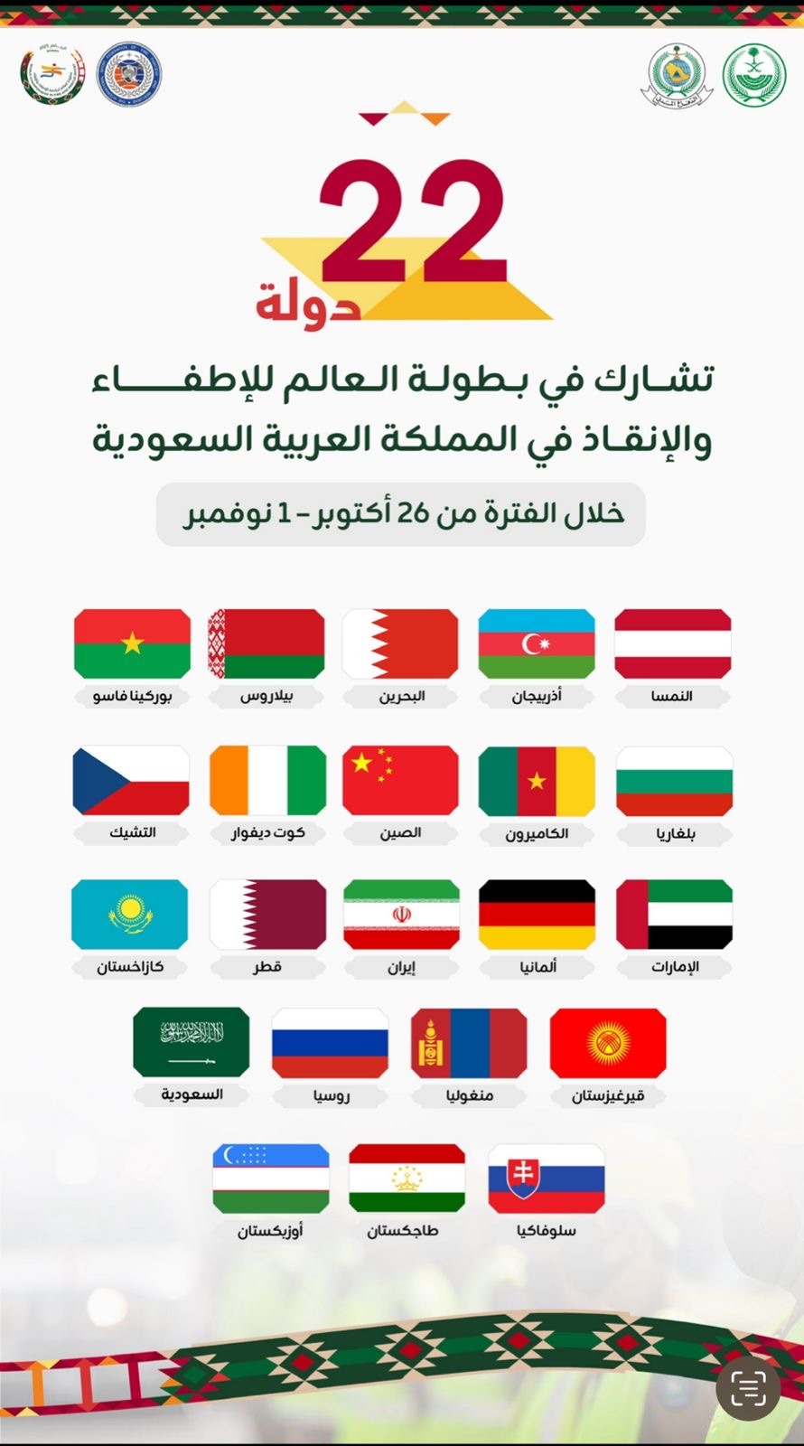 الرياض تحتضن بطولة العالم للإطفاء والإنقاذ بمشاركة (22) دولة