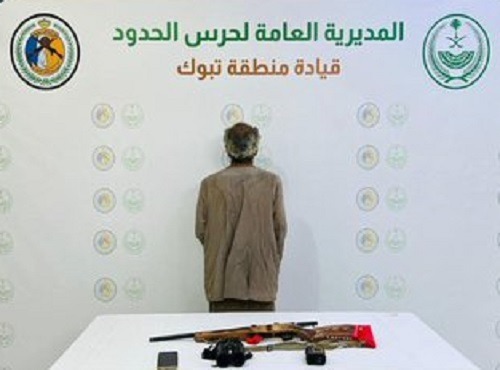 تمكَّنت الدوريات الساحلية لحرس الحدود، من ضبط مواطنٍ مخالفٍ لنظام البيئة، لارتكابه مخالفة الشروع في الصيد دون ترخيص بمحافظة حقل في منطقة تبوك، بحوزته بندقية شوزن، و(8) ذخائر حيّة، وتم تطبيق الإجراءات النظامية بحقه.