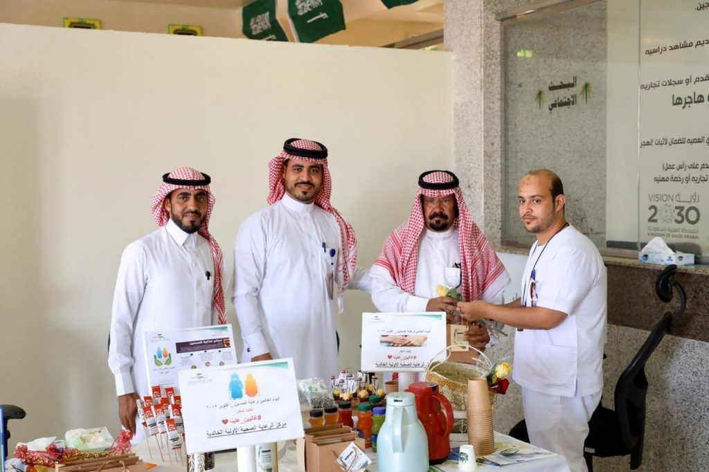 وشارك مستشفى الوجه العام ممثلاً بقسم التثقيف والتوعية الصحية وبالتعاون مع مكتب الضمان الإجتماعي بمحافظة الوجه وذلك لرفع نسبة الوعي بالمشاكل التي تواجه كبار السن كالهرم وإساءة معاملة كبار السن وذلك لإلقاء الضوء على هذه الفئة العمرية التي أسهمت في تنمية المجتمع وأثبتت قدرتها على مواصلة العطاء وقد جاءت مشاركة المستشفى بهذه المناسبة بوضع ركن توعوي وعيادة لفحص العلامات الحيوية والسكري وتقديم بعض النصائح والإرشادات الصحية وتوزيع الهدايا على الحضور.