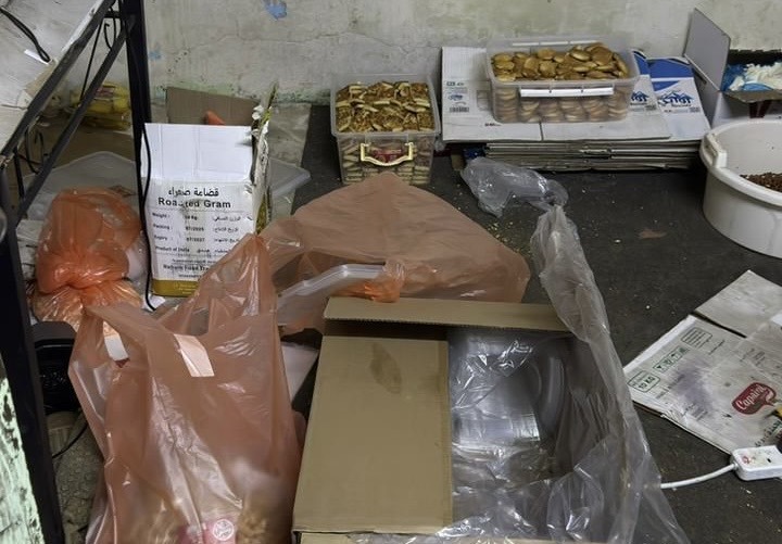 وقالت الأمانة إن الفرق الرقابية عثرت داخل الموقع على مواد غذائية متنوعة بلغ مجموعها أكثر من 600 كجم من السكر والطحين والحمص والسميد والمعجنات والحلويات والخميرة، إضافة إلى أواني متنوعة غير صالحة للاستخدام.