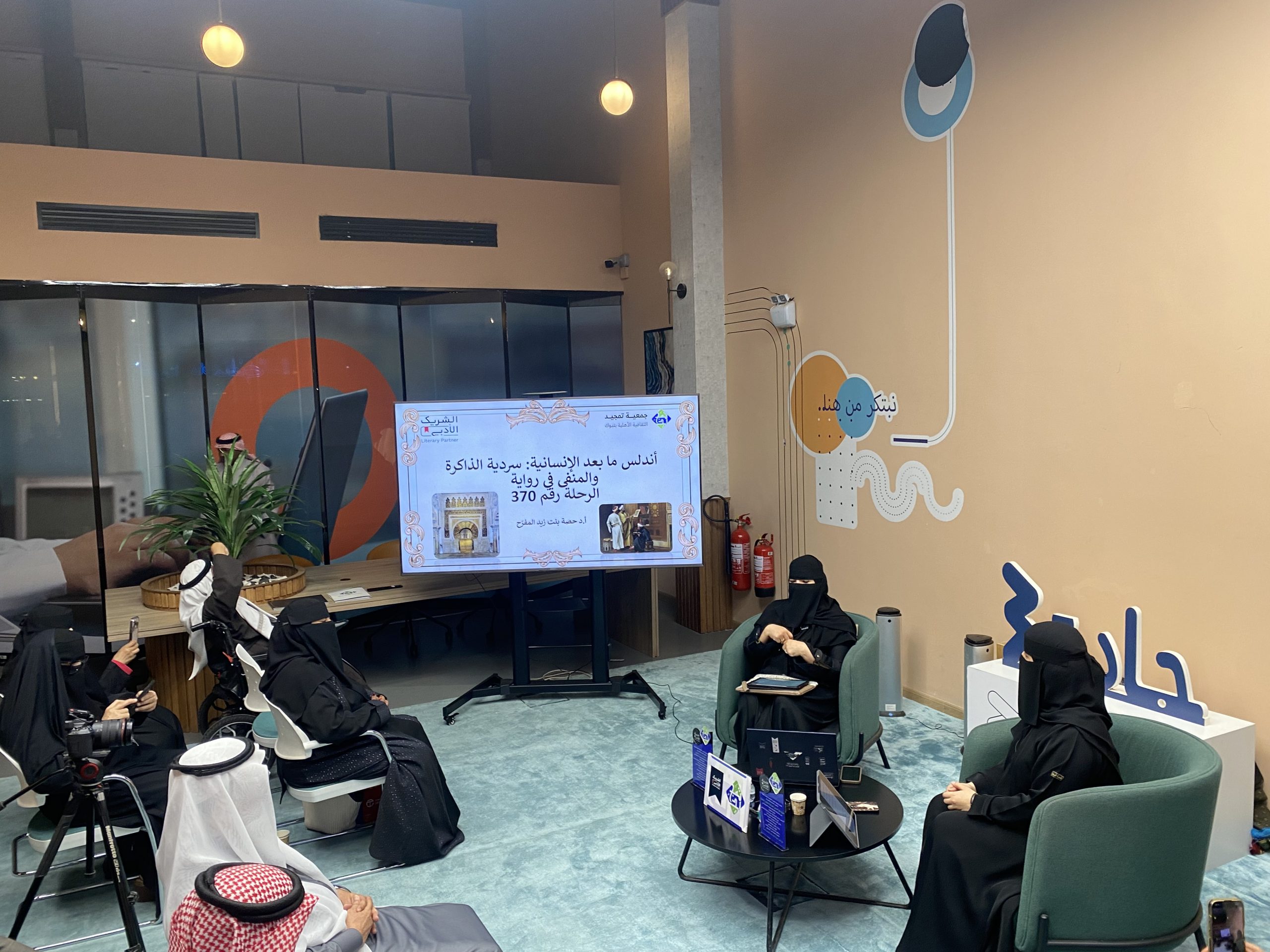 في ليلة ثقافية حملت الكثير من العمق والتأمل، احتضن الشريك الادبي جمعية تمجيد الثقافية الأهلية أمسية فكرية بعنوان «أندلس ما بعد الإنسانية: سردية الذاكرة والمنفى في رواية الرحلة رقم 370»، قدّمتها أستاذة الأدب والنقد بجامعة الملك سعود أ.د حصّة بنت زيد المفرّح، وبحوار أدارته الإعلامية أ هديل الروقي، وسط حضور لافت من المهتمين بالأدب السردي والدراسات الحديثة وذلك في جادة 30 بمدينة تبوك .