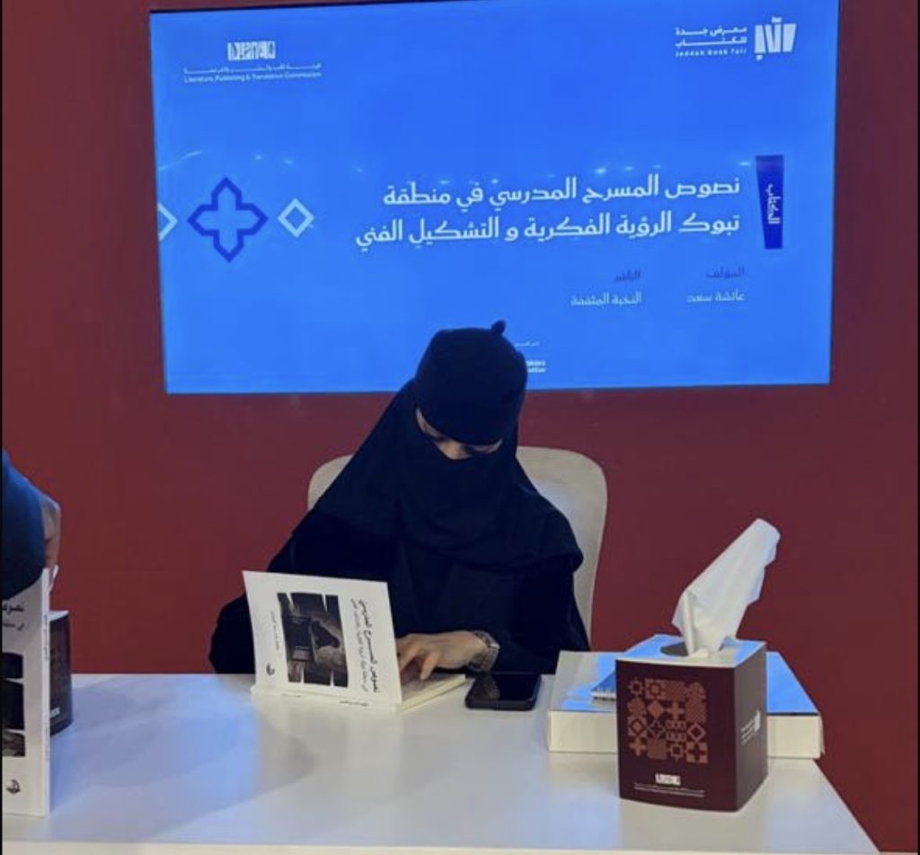 وتُوّج هذا المشروع بإصدار كتاب نصوص المسرح المدرسي في منطقة تبوك: الرؤية الفكرية والتشكيل الفني، الذي جرى تدشينه في معرض جدة للكتاب بتاريخ 19/12/2025، إلى جانب كتابها الأول قول العسجد، مؤكدة أن هذا الإصدار ليس نهاية الطريق، بل بداية لفتح ملف بحثي أوسع حول المسرح في المنطقة.