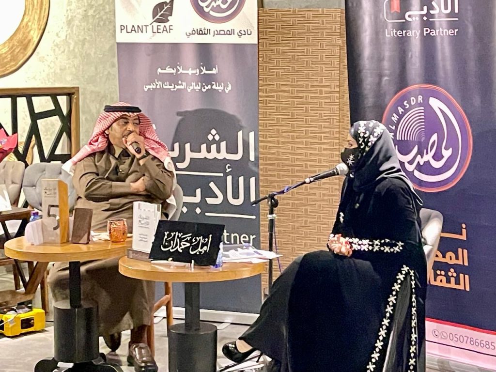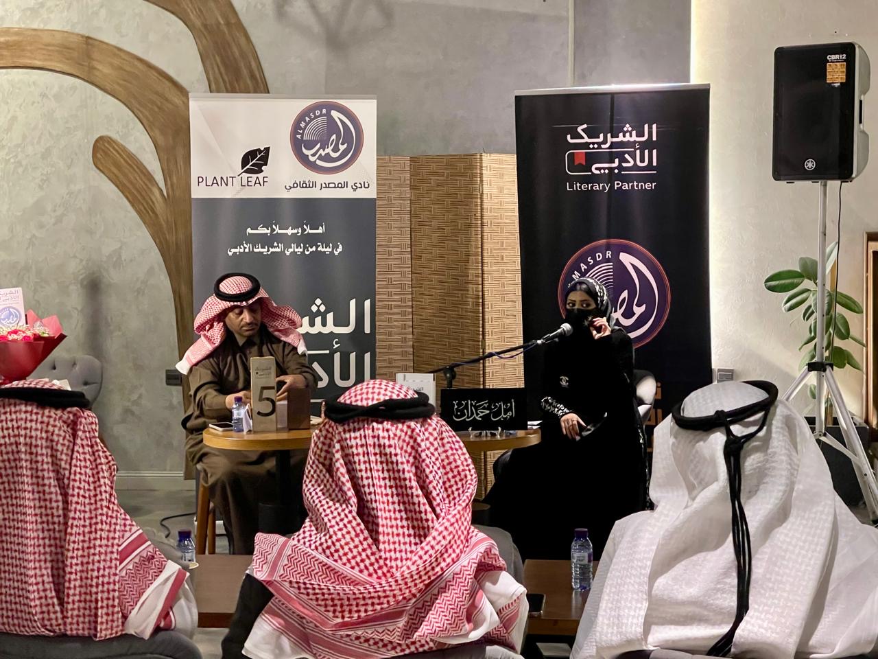 في إطار الحراك الثقافي المتنامي بمدينة تبوك، نظم الشريك الأدبي نادي المصدر الثقافي أمسية أدبية، استضاف خلالها الكاتبة الدكتورة أمل حمدان، في لقاء حوارها فيه الإعلامي بدر الجبل، وذلك بحضور نخبة من المثقفين والمهتمين بالشأن الأدبي في تبوك.