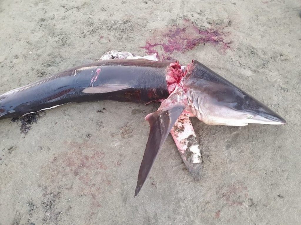 سمكة قرش تثير الرعب بشواطئ القنفذة.. ومرتادو الشاطئ يقتـلونها