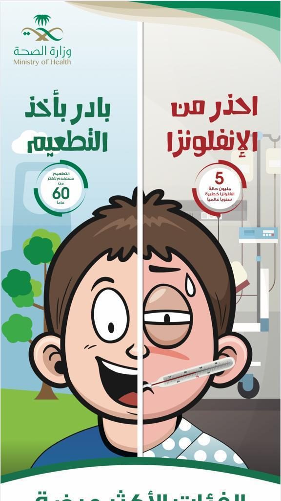 تواصل القطاعات الصحية بصحة بيشة حملتها الوطنية للتطعيم ضد الانفلونزا الموسمية شتاء ١٤٤١ وقد أعدت صحة بيشة كامل التجهيزات من لقاحات ولوازم طبية لانجاح هذة الحملة والتي بدأت أعمالها من ٢١ / ٢ / ١٤٤١ وتستمر بمشيئة الله مدة ٤ شهور والقاح يعطي من عمر ٦ شهور وجميع الفئات العمرية ذكور وإناث وجميع اللقاحات متوفرة في المراكز الصحية .