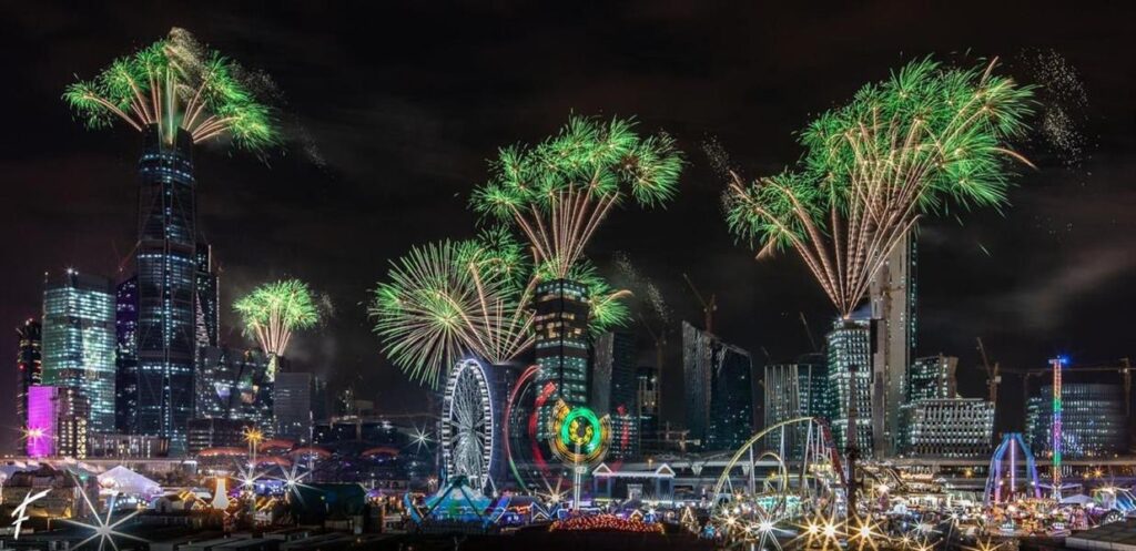 وأظهرت الصورة التي نشرها وزير الثقافة عبر حسابه في “تويتر”، عدداً من معالم عاصمة المملكة وسط الألعاب النارية، فيما علق الوزير عليها بالقول: “الصورة أبلغ من الكلام”.