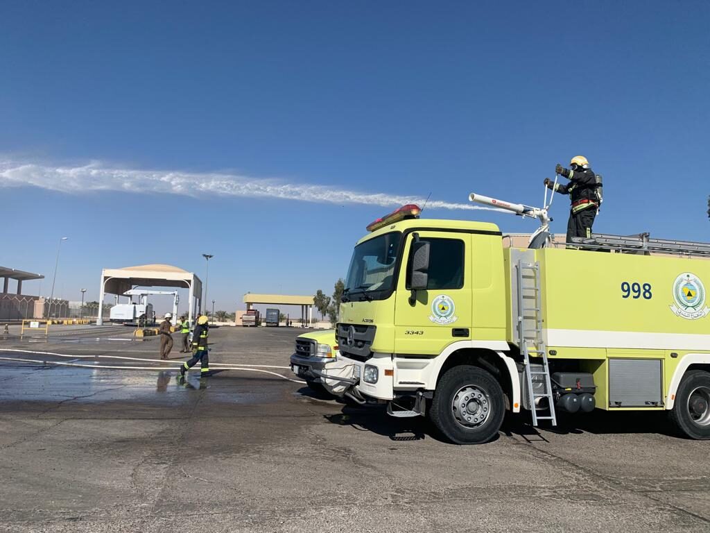 مدني حالة عمار ينفذ فرضية حريق بالجمارك السعودية بالمنفذ