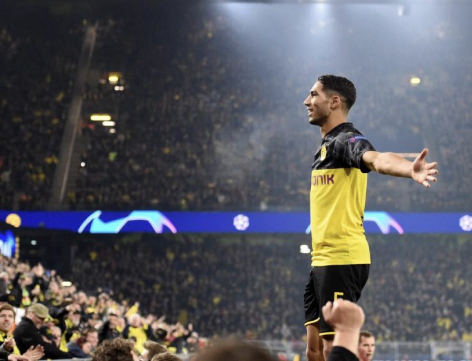 ويلعب حكيمي لفريق دورتموند بعقد إعارة من ريال مدريد، وغاب عن دورتموند في مباراة واحدة فقط خلال ثاني موسم له مع الفريق الألماني، وولد حكيمي في العاصمة الإسبانية مدريد، وصعد عبر فريق الشباب بنادي ريال مدريد.