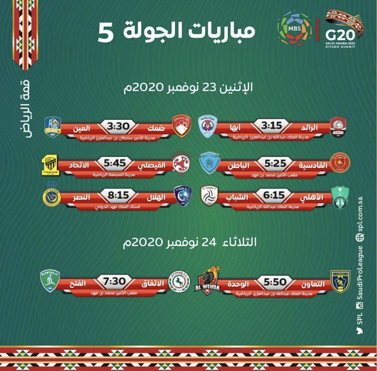 مواجهات الجولة الخامسة “قمة الرياض” تنطلق غداً بست مباريات