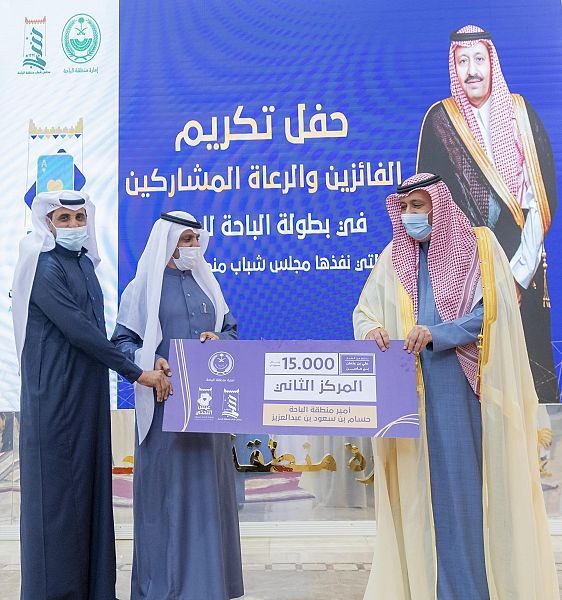 كرم صاحب السمو الملكي الأمير الدكتور حسام بن سعود بن عبدالعزيز أمير منطقة الباحة الرئيس الفخري لمجلس شباب المنطقة بالإمارة اليوم , الداعمين والفائزين في بطولة الباحة للبلوت “عيش التحدي” التي نظمها مجلس شباب منطقة الباحة بالتعاون مع وزارة الرياضة ممثلة في الاتحاد السعودي للرياضات الإلكترونية والذهنية بمركز الحسام للمعارض والمؤتمرات بالباحة خلال الفترة من 14 إلى 18 / 4 / 1441هـ.