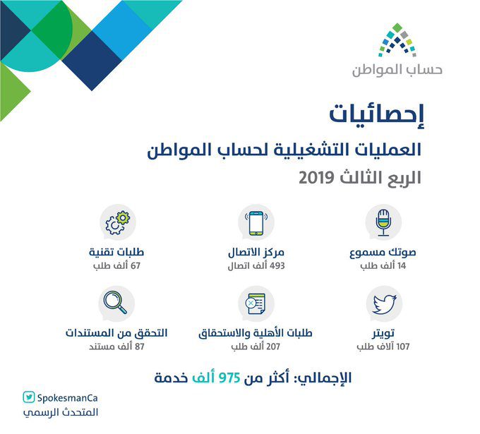 أنجز برنامج حساب المواطن أكثر من 975 ألف خدمة في الربع الثالث من العام الجاري على جميع المنصات شاملةً...
