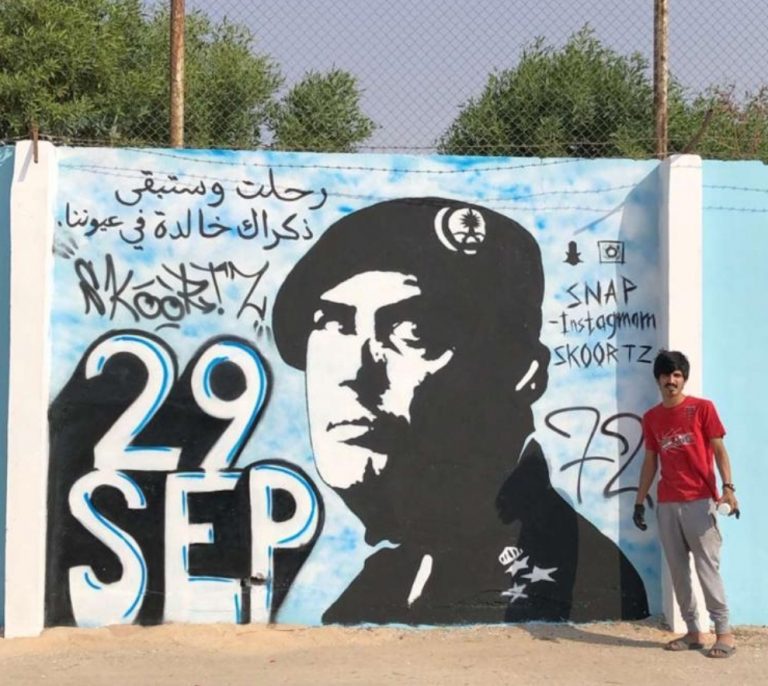 قام الرسام سلمان فهد الحريجي من سكان محافظة حفر الباطن برسم جدارية كبيرة لرثاء اللواء عبدالعزيز الفغم بالحرس الملكي....