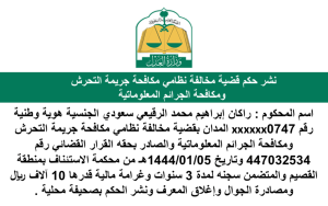 نشر حكم قضية مساس بالنظام العام ومخالفة نظام...