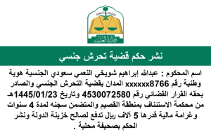 نشر حكم قضية مخالفة نظامي مكافحة جريمة التحرش...