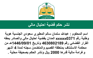نشر حكم قضية مخالفة نظام مكافحة الاحتيال المالي...