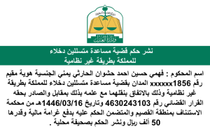نشر حكم قضية مساعدة متسللين دخلاء للمملكة بطريقة...
