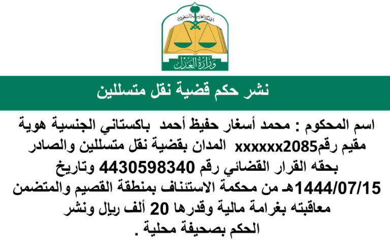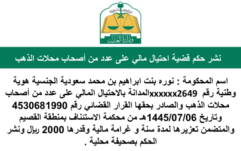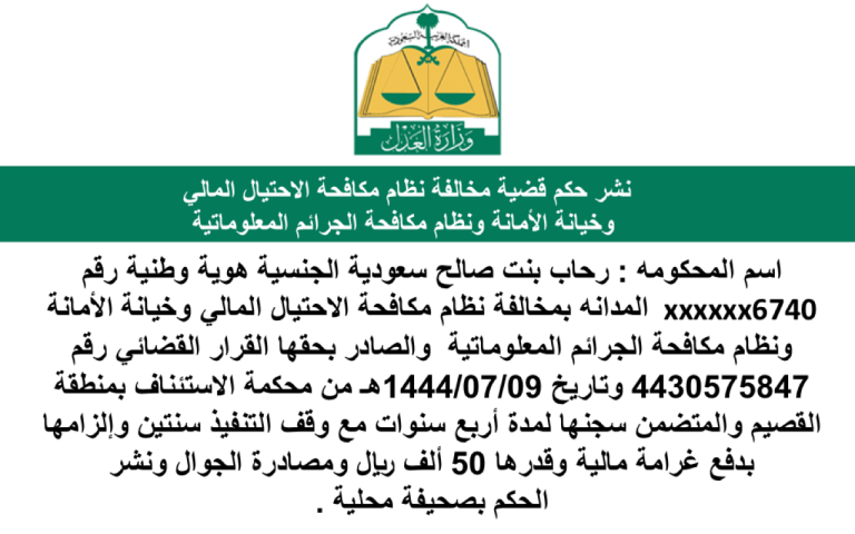 نشر حكم قضية مخالفة نظام مكافحة الاحتيال المالي...