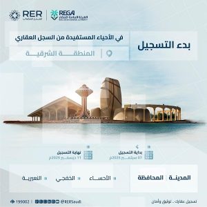 أعلن السجل العقاري اليوم، عن بدء استقبال طلبات التسجيل العيني الأول لـ(214,166) قطعة عقارية منها (157,720) قطعة عقارية في...