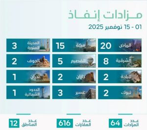 أعلن مركز الإسناد والتصفية “إنفاذ”، إقامة (64) مزادًا علنيًا ما بين حضوري وإلكتروني، لتصفية وبيع (616) أصلًا متنوعًا في...