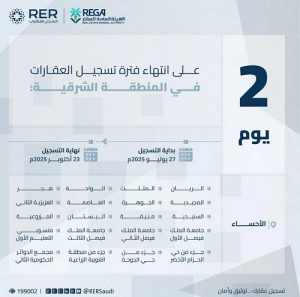 أعلنت الهيئة العامة للعقار عن قرب انتهاء المهلة المحددة للتسجيل العيني الأول للعقار لـ 14878 قطعة عقارية في محافظة...