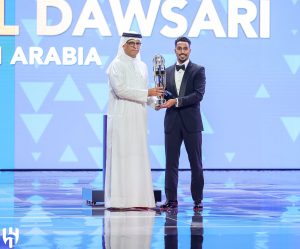 توّج لاعب المنتخب السعودي الأول لكرة القدم ونادي الهلال سالم الدوسري، بجائزة أفضل لاعب في آسيا 2022، خلال الحفل...