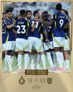 في أمسية كروية لا تُنسى، فجّر النصر غضبه الكروي على الأخدود بتسعة أهداف دون رد، في لقاء ضمن الجولة...